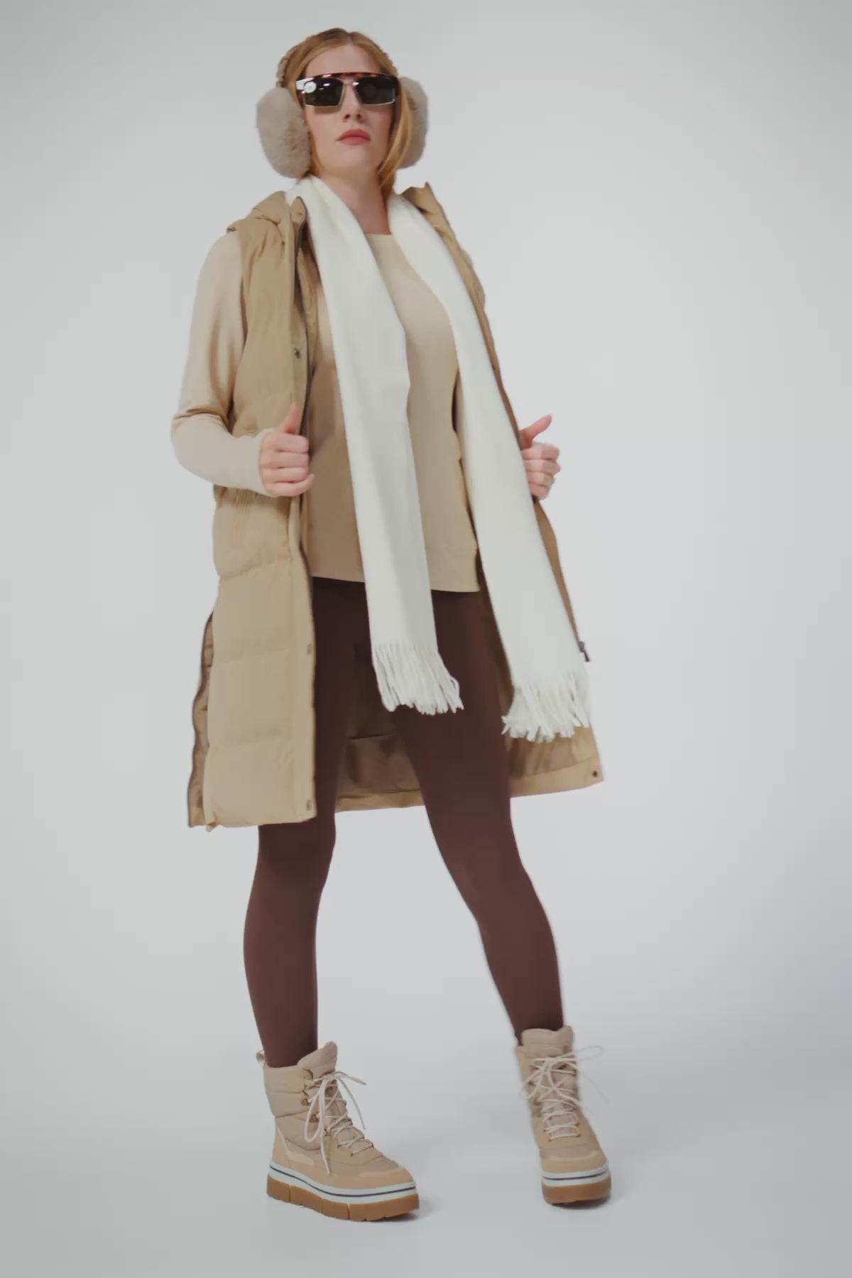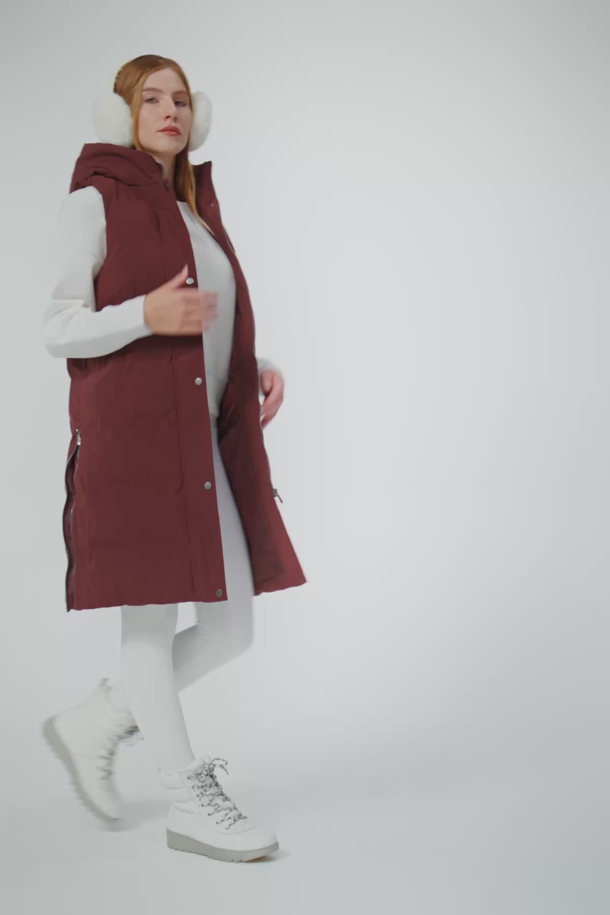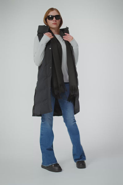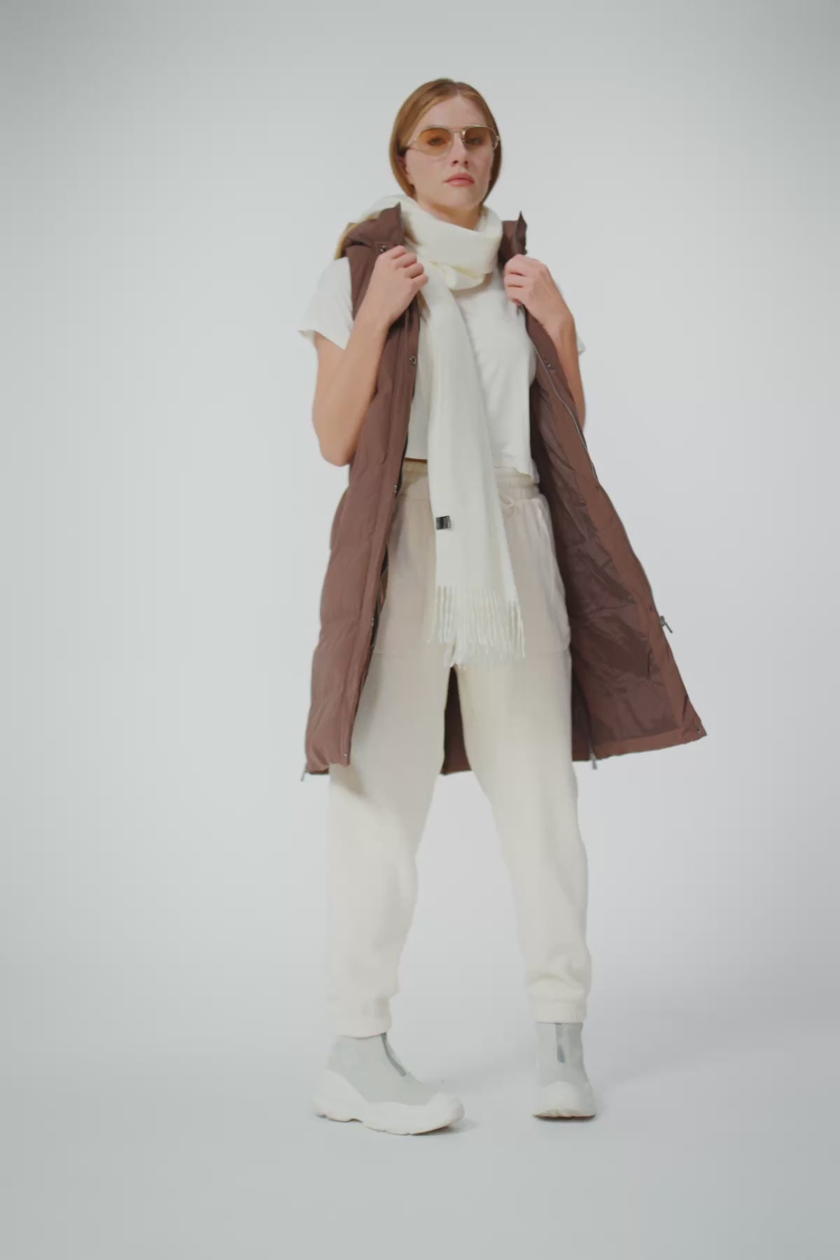 The Explorer Long Puffer Vest is designed for everyday warmth with a clean, modern edge. Made from quilted polyester and fully lined for comfort, it delivers lightweight insulation while maintaining an easy, layer-friendly feel. The longline silhouette provides added coverage, complemented by an attached hood for cold-weather protection. Finished with a full zip front, snap placket, and side seam zippers for ease of movement, this vest transitions effortlessly from daily wear to travel and outdoor moments.